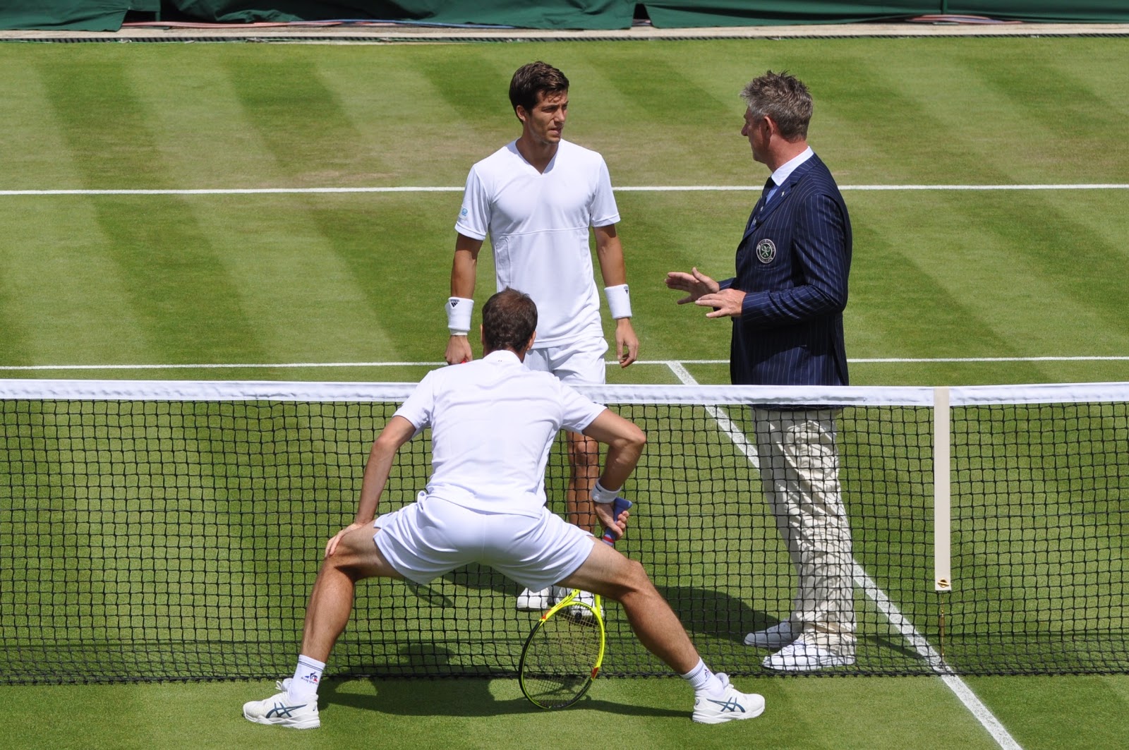 規律のとれたボールパーソンたちが整然と入場してきます。全仏のボールパーソンとは全然違う雰囲気。